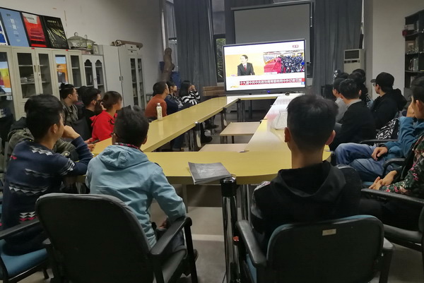 雕塑系组织师生收看十九届中共中央政治局常委同中外记者见面会