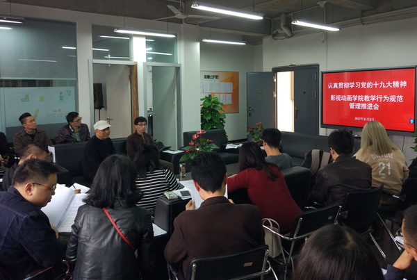 为认真学习贯彻党的十九大精神,结合实际将十九大精神落实到具体工作中去,影视动画学院于11月3日下午在学院三楼会议室举行了影视动画学院教学行为规范推进会。会议由学院党总支书记柏在华主持,学院全体教职工参加会议。