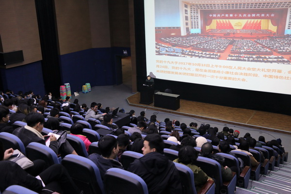 周小波向三个年级的本科学生宣讲了十九大精神,就十九大报告中的“坚定文化自信,推动社会主义文化繁荣兴盛”作了重点解读,号召大家肩负起时代使命,坚持以人民为中心的创作导向,发挥专业优势,为建设有中国特色社会主义文化,促进文化繁荣和文化进步贡献自己的力量。