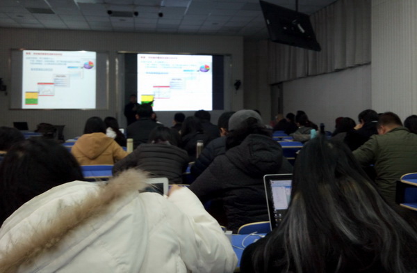 陈前进教授从“让图示承载语言信息”、“让逻辑过程视觉化”、“让全局呈现在眼前”、“动画和切换”等四个方面,向受训教师演示了PPT制作的技巧、原则和方法。同时结合自己和身边教师在制作PPT中经常出现的问题,通过生动形象的案例演示,详细讲解了PPT的合理使用以及如何学好用活PPT增强教学效果等内容。