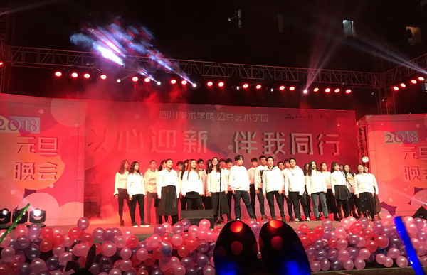 12月21日晚7点,为迎接新一年的到来,展现师生良好的精神风貌,丰富学生校园生活,公共艺术学院“以心迎新.伴我同行”元旦晚会在黄桷坪校区操场举行。学校党委副书记左益出席晚会。公共艺术学院党政领导钟正武、郭晏麟、郭小兵与全体师生一起观看了晚会。黄桷坪附近居民也闻讯前来观看。