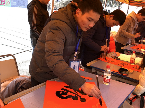1月14日上午11点,中国画系在大学城熙街举行了以“书写自信,文化惠民”为主题的传统艺术文化体验系列活动。本次活动旨在学习贯彻、践行党的十九大精神,用实际行动坚定文化自信。