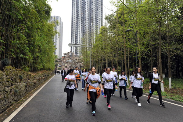 环校园越野健走从虎溪校区足球场开始,途经学生宿舍、罗中立美术馆、虎溪工作室、隧道、家属区和绘画楼,最后抵达足球场,步行两圈完成健走,环线距离约6公里。