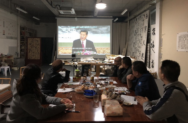 会后,支部全体党员一起观看学习了《厉害了,我的国》视频片段。