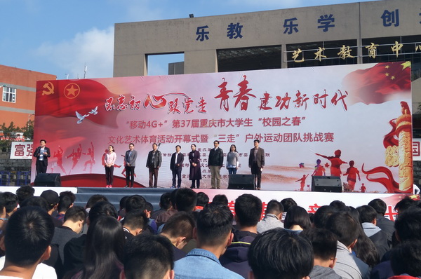 4月1日上午,“不忘初心跟党走,青春建功新时代”重庆市第37届大学生“校园之春”文化艺术体育活动开幕式暨“三走”户外运动团队挑战赛在重庆邮电大学移通学院举行。我校师生代表队参加了开幕式以及“三走”主题挑战赛,市内40余所高校团委负责同志和青年大学生代表2000余人参加了活动。