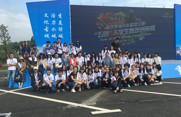 在第99个“五四”青年节到来之际,美术教育系66名大学生齐聚璧山秀湖汽车露营公园,参加由璧山团市委高校部、团区委、区旅游发展中心、万象城平台团委联合在秀湖汽车露营公园举办的青春无界·创意无限——“五四”大学生帐篷创意赛。比赛现场,同学们用手中的画笔在33顶白色帐篷上,以“亲山亲水青春城”的主题,把青春的色彩,“五四”的旋律,涂抹在帐篷上、画布上,为璧山留下靓丽的色彩。