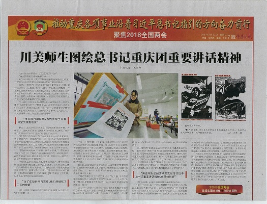 赢得网络阵地。习近平总书记在全国高校思政工作会议上要求“要运用新媒体新技术使工作活起来,推动思想政治工作传统优势同信息技术高度融合,增强时代感和吸引力。”版画系在学校党委和党委宣传部的领导下,结合学生思想特点和网络媒体传播规律,把说理教育变成生动的形象教育,让师生在网络媒体宣传中找到归宿感、自豪感、荣誉感。一年以来,版画系高度重视新闻媒体对版画人、版画事的跟踪报道。《人民日报》的主题文章《镌刻》,《重庆日报》的主题文章《风雨无阻的搀扶》、《三代版画人共绘美好新时代》、《川美师生巧手描绘新农村》、《川美师生图绘总书记重庆团重要讲话精神》,《当代党员》的主题文章《形式多样、直抵人心》,重庆电视台《新闻联播》、中国教育频道, 《新华网》、《人民网》、《华龙网》、《重庆发布》等一系列中央和地方主流媒体聚焦了版画的人、版画的事,增强了思想政治教育的时代感和吸引力。在“发出版画声音、讲好版画故事”的过程中,版画系的思想政治教育聚焦了社会和时代的正能量,激发了师生的集体归宿感和创业自豪感,引领师生朝着版画系和学校的建设目标奋力前行。