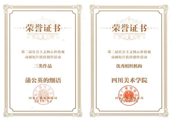 由国家新闻出版广电总局主办,教育部高等学校动画、数字媒体专业教学指导委员会协办的“第二届社会主义核心价值观动画短片创作活动”于4月25日公布优秀作品名单,影视动画学院创作动画片《蒲公英的细语》获评优秀作品,万象城平台影视动画学院获评优秀组织机构。