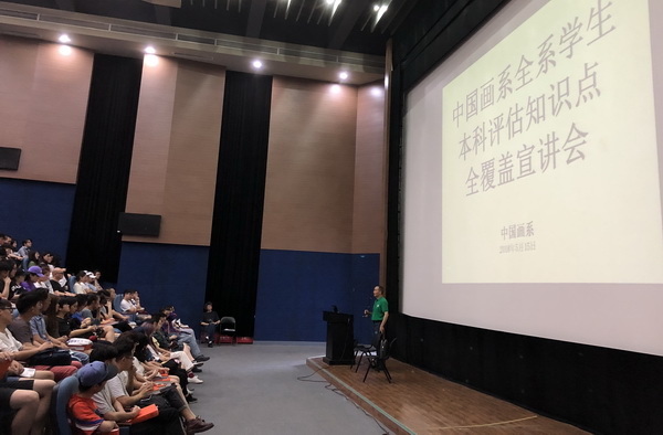 系主任黄山对应中国画系自订的本科教学审核评估学习材料,采用现场提问、现场回答的方式,从中国画系的专业办学历史、专业特色、系科传统、办学思想、办学理念、教学目标、教学理念、教学体系、专业定位、专业内涵、专业培养目标、专业规划等方面,为师生进行了全面的梳理和辅导。同时用一系列简单易懂的图表给师生们普及、介绍了相关知识。会议的举行,让中国画系师生熟练掌握了学校办学和人才培养情况,以及系科培养办学模式、专业发展等方面内容。