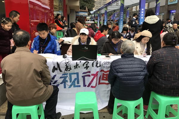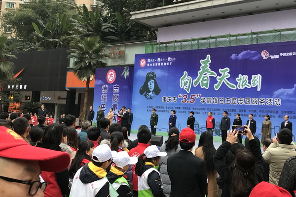 3月3日上午,影视动画学院团总支书记唐巧玲带领十名学生志愿者在三峡广场参加由市委宣传部、市文明办等单位共同举办的“向春天报到”——重庆市“3-5”学雷锋日主题志愿服务活动,为市民提供免费画像服务。