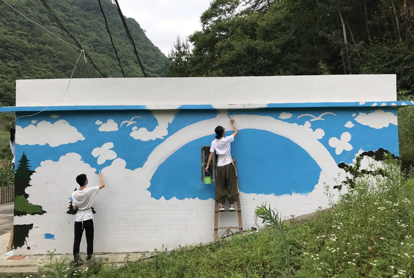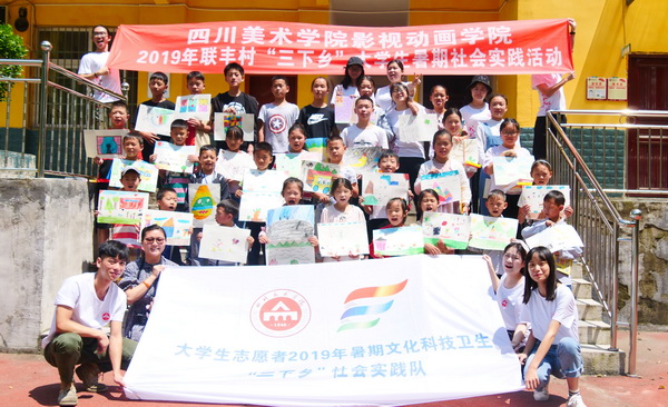 7月13日至19日,影视动画学院“艺术助力美丽乡村建设”三下乡实践团队师生一行14人赴重庆市城口县龙田乡联丰村开展服务乡村振兴专项实践活动。实践团利用自己的艺术专业特长,深入乡间地头,在感受新中国成立70周年以来中国农村发生的日新月异变化的同时,服务联丰村的乡村振兴计划,展开了一系列活动:为联丰村绘制艺术墙绘,改善村庄人居风貌;为村里的孩子开展创意美术小课堂和动画电影赏析,启发孩子们对美的认识;设计联丰村动漫形象,提高联丰村的知名度;结合联丰村垃圾零废弃绿色村庄建设,在联丰村各处特色地点采集素材,为联丰村拍摄宣传短片,推动联丰村生态旅游产业发展,用艺术助力联丰村美丽乡村建设。