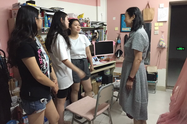 9月3日晚,建筑与环境艺术学院党总支书记聂玉红和辅导员一行走访港台学生寝室,关心了解他们的学习、生活情况。