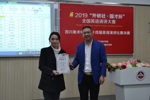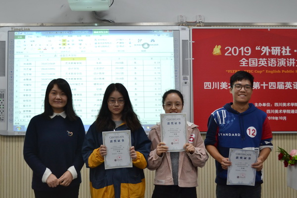 本次英语演讲比赛历时两周,经过10月9日初赛的激烈角逐,从117位参赛选手中选拔出22位进入到决赛阶段。在10月16日的决赛中,22名来自不同院系、风格各异的选手一展风采,给评委和观众带来了一场视听盛宴。本次决赛分为命题演讲和即兴演讲两个环节。在命题演讲题演讲中, 选手们以 “My big story in 2049” 为主题,讲述自己的故事,相较初赛,选手们的语言流利度有了很大的提高,激情澎湃地展现出了良好的演讲水平。即兴演讲中,选手们面对抽到的陌生题目,依旧从容自信,展示出良好的英语能力和较强的临场应变能力,得到了评委老师的高度认可和全场观众的热烈掌声。经过命题演讲和即兴演讲两个环节的比拼,来自艺术教育学院2018级的本科生刘诗扬同学获得演讲比赛一等奖,将代表学校参加重庆市第29届大学生英语演讲比赛;一同代表学校参加重庆市第29届大学生英语(研究生组)演讲比赛 的还有来自造型艺术学院的研究生徐悦华。