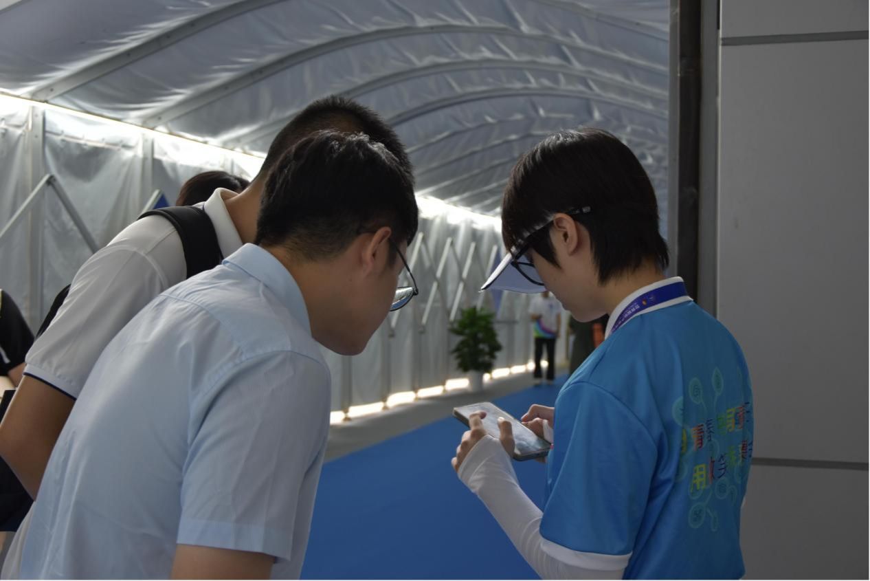 作为展览组志愿者,我主要负责引导与答疑,每天都会面对许多“知识盲区”:“科大讯飞在哪?”“集章处怎么走?”……这些问题不仅考验记忆力,更锻炼应变能力。从一开始只熟悉展馆位置,到后来了然每个展台,我从紧张到从容应答,四天时间,收获远比想象中更多。