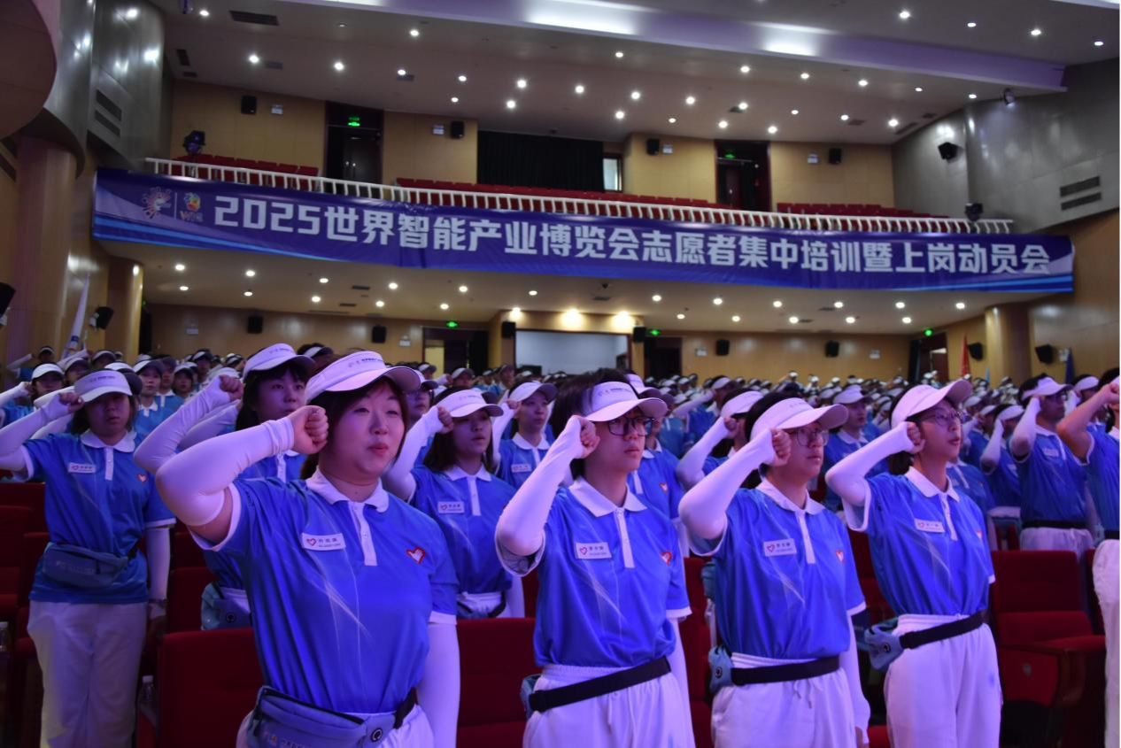 自招募通知发出后,同学们积极响应、踊跃报名,校团委精心组织、统筹谋划,最终选拔24名志愿者。9月2日,我校“蓝精灵”前往重庆邮电大学参加2025世界智能产业博览会志愿者上岗动员会,集中学习了志愿服务礼仪规范、志愿者心理健康、医疗急救及安全自护。在智博会期间,我校志愿者主要服务于N4、N5、N7三个展览馆,承担观众引导、展商咨询、秩序维护等多项任务,每日接待游客上万余人次,日均服务超过10小时。面对各年龄段不同的游客,志愿者们分工有序,热情洋溢,始终以饱满的精神状态投入服务,用亲切的“您好”、耐心的点头和准确的指引,积极回应每一位游客的需求。