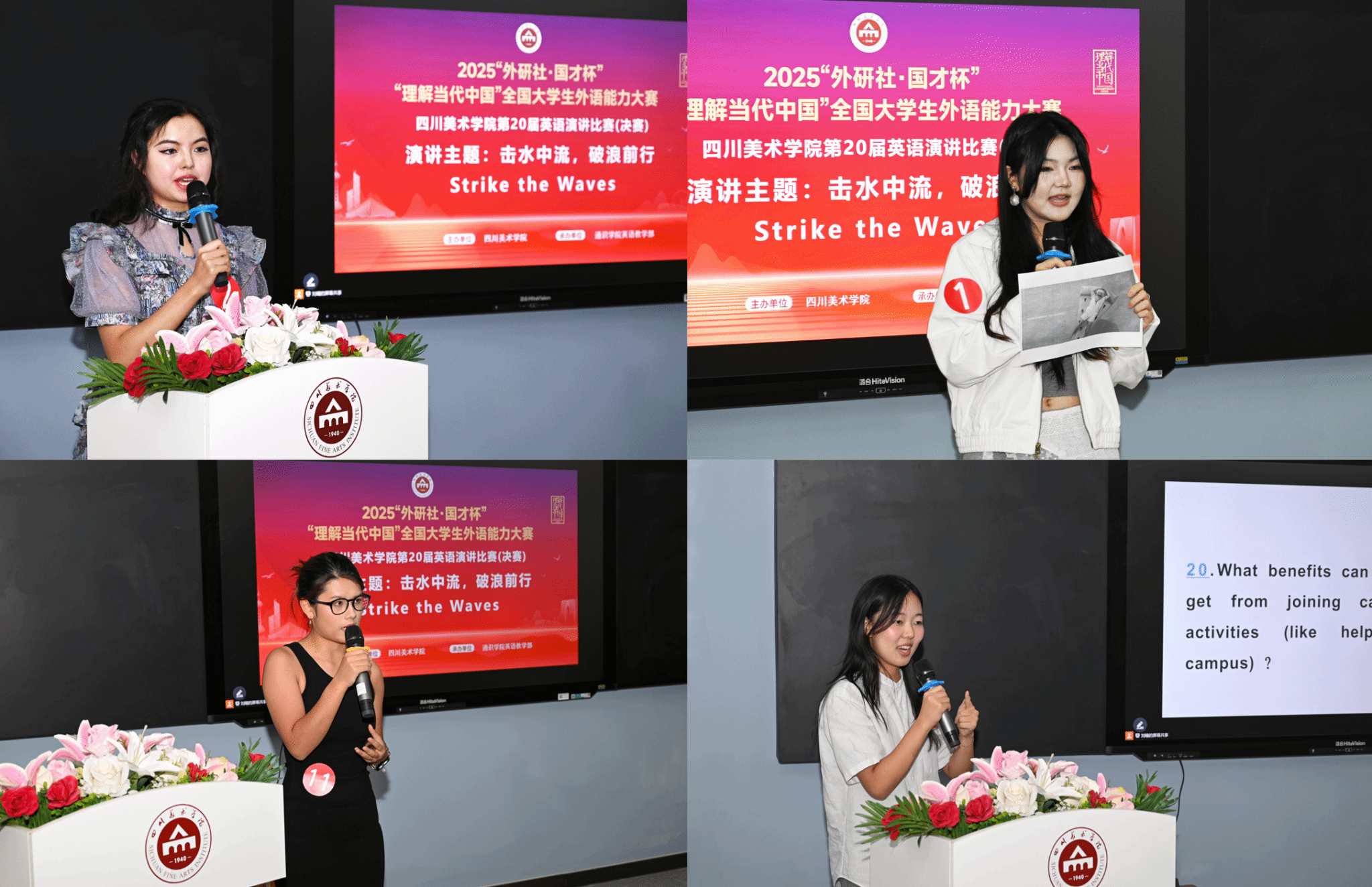 本次演讲比赛分为定题演讲和即兴演讲两个环节。在定题演讲中,选手们以流利的英语和鲜活的事例讲述“中国故事”,充分展现了新时代中国青年的智慧与风采;在即兴演讲环节,选手们以扎实的语言功底与沉稳的表现,让现场评委和观众感受到了川美学子的风采以及学校英语教学的丰硕成果。