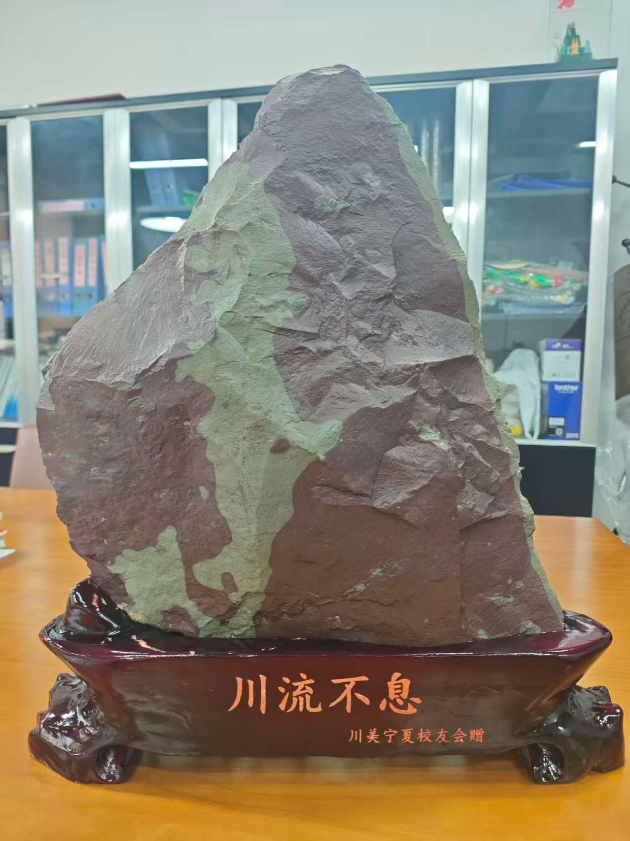 据悉,广西校友会捐赠的《穿越时空》摩尔石艺术作品已放置于虎溪校区图书馆前,该石长1.1米、高1.7米、厚0.6米。宁夏校友会捐赠的《川流不息》贺兰石艺术作品已放置于虎溪校区行政楼,该石长48厘米、高55厘米、厚12厘米。