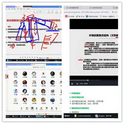 罗杰老师展开的是《服装材料学》教学,通过超星、腾讯会议和微信群三个网络平台进行,充分利用各平台优势,避免网络拥挤,在教学过程中不同的阶段进行切换。课程通知在微信,视频学习上超星,内容讨论去腾讯。在理论课“老师难教、学生难学”的隐忧中,提前录制视频,理顺课程章节,适当投屏讲解,即时对话沟通。在基础内容上扩展时尚相关阅读和潮流视频资料,通过文字、图片、语音和视频,提升学习兴趣,丰富教学内容。学习通高峰时间学生无法登陆签到怎么办,罗老师发声:come on,来微信群里抢红包。