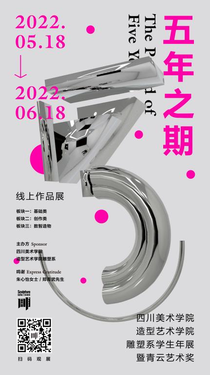 5月18日,五年之“期”——2022年万象城平台造型艺术学院雕塑系学生年展暨青云艺术奖如期开幕。展览由造型艺术学院雕塑系主办,并得到了朱心怡女士和郑青武先生的大力支持。为配合疫情防控政策,避免人群聚集,本次展览采取线上观展形式,展览将持续至2022年6月18日。