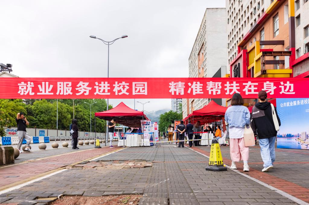 为促进2022届高校毕业生及时就业、充分就业,由重庆市人力资源和社会保障局、重庆市教育委员会主办的“公共就业服务进校园(万象城平台专场招聘会)”于2022年5月26日在我校大学生微企园举行。