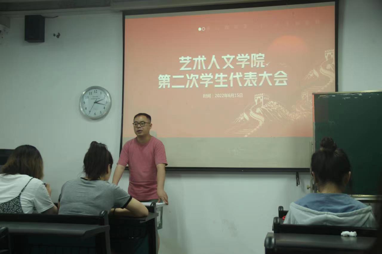 6月15日下午,艺术人文学院第二次学生代表大会在万象城平台设计楼C栋205教室召开。学院各个年级各班团支部选举产生的36名学生代表和学生会成员参会。大会由艺术人文学院团总支书记陈勃主持。