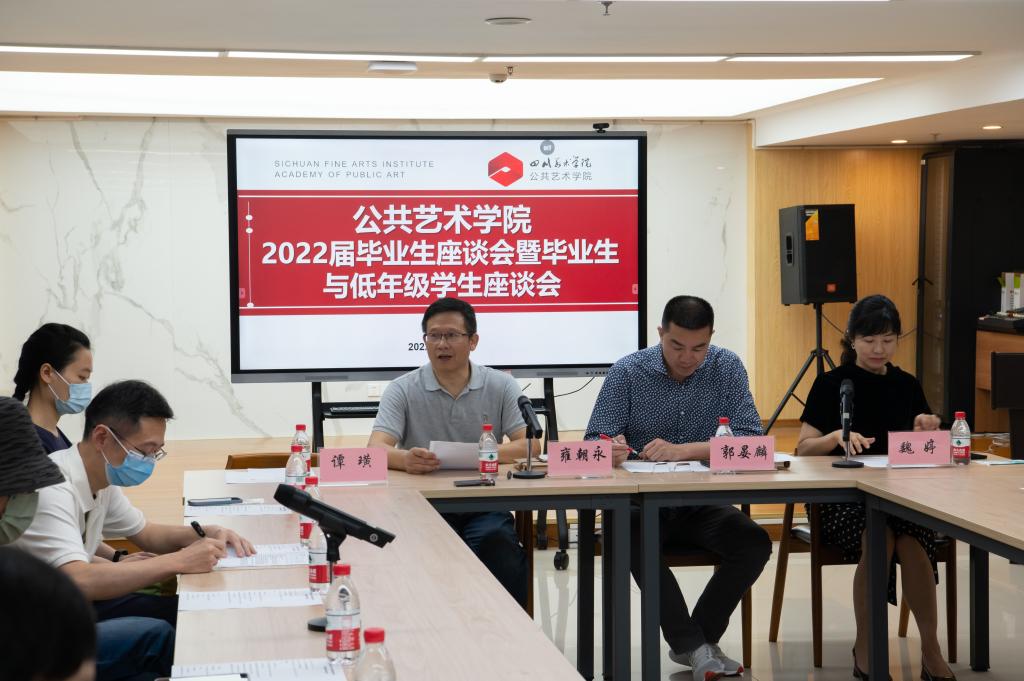 6月17日上午9点,公共艺术学院在黄桷坪校区综合楼四会议室召开2022届毕业生座谈会。公共艺术学院党总支书记雍朝永、院长郭晏麟、副院长魏婷、副院长谭璜,学院各教研室主任、教师代表、辅导员、优秀毕业生以及部分低年级同学共70余人参加会议。座谈会由魏婷主持。