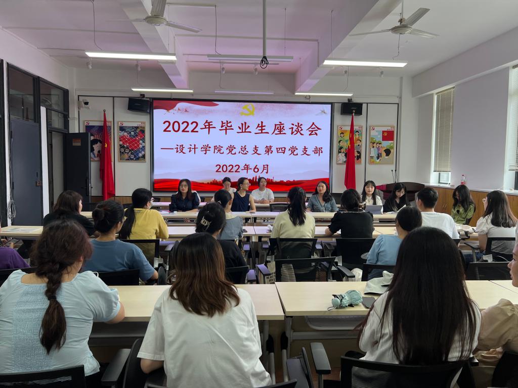 为做好2022年毕业生各项毕业离校教育工作,营造温馨的毕业氛围,提升毕业生的归属感与幸福感,设计学院策划了欢送毕业生系列活动,包括组织座谈会、拍毕业照、发放纪念品。