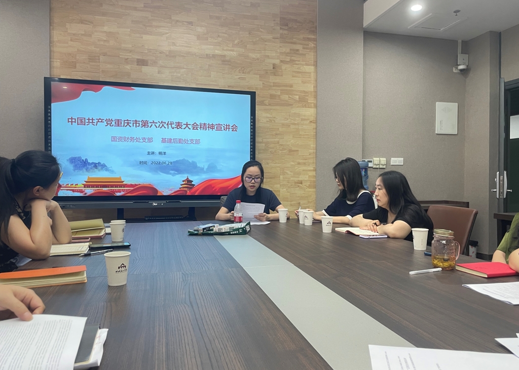 6月28日,机关党委国资财务处党支部与基建后勤处党支部联合开展了学习重庆市第六次党代会精神主题党日活动。