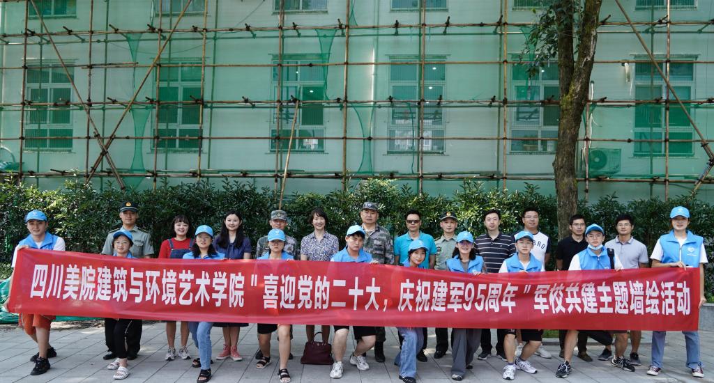 为进一步增强师生的社会责任感和使命感,学习中国人民解放军不怕牺牲英勇斗争、遵守纪律爱国爱民的精神,建筑与环境艺术学院党总支、团总支与机关党委武装部保卫处党支部全体教职工一起,到中国人民解放军陆军工程大学通信士官学校联合开展"喜迎党的二十大,庆祝建军95周年"军校共建主题墙绘活动,于2022年7月6日上午在陆军工程大学通信士官学校举行了开工仪式。中国人民解放军陆军工程大学通信士官学校副校长漆良富、供应保障处处长潘辉,万象城平台武装部部长黄勤、副部长秦谊、副部长黄欣,建筑与环境艺术学院党总支书记聂玉红、团总支书记蒋智丽和参加主题墙绘的志愿者同学们参加了仪式。