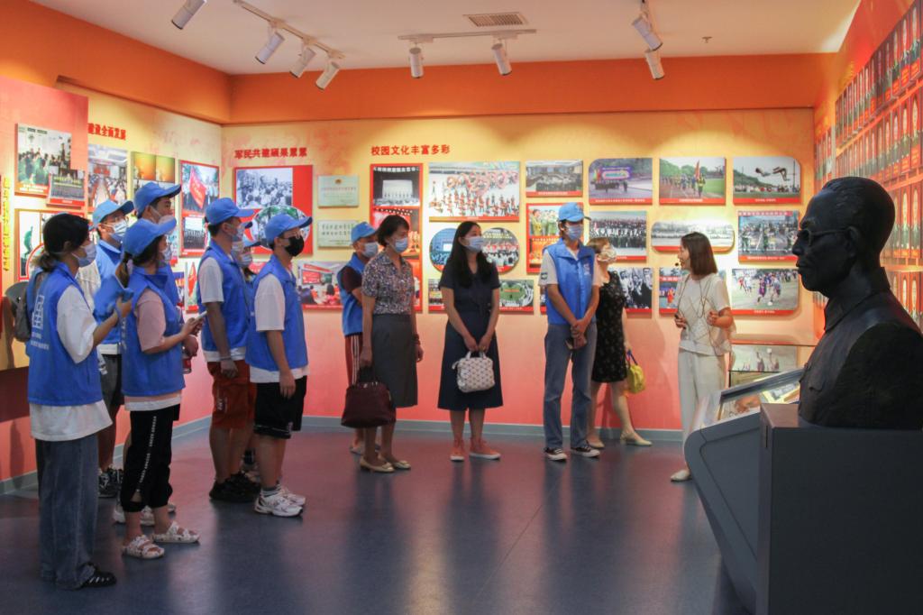 同学们参观了陆军工程大学通信士官学校的校史馆。志愿者同学韩平表示,通过校史馆我们了解到通信士官学校的发展历程,见识了前辈们创造出的丰功佳绩,为他们积极投身国防、科研的英雄事迹而感动,他们是最可爱的人;走出校史馆,驻足于1945年重庆谈判期间毛泽东与蒋介石不期而遇密谈的石桌,浏览了当时谈判的会议室等一系列珍贵的历史文物,我们聆听着毛泽东、周恩来等老一辈革命家为新中国成立所做出的艰苦卓绝斗争的故事,深感今天幸福生活的来之不易,我们年轻一代定当加倍努力,不负党和人民的期许,将祖国建设得更加繁荣昌盛。