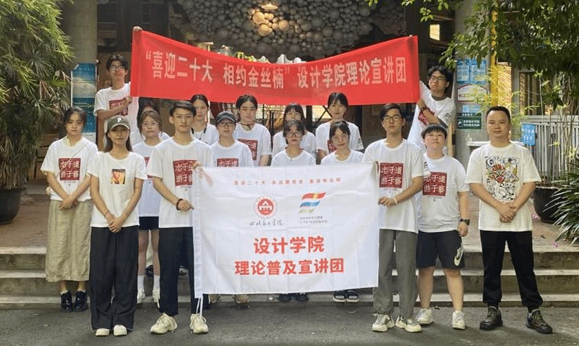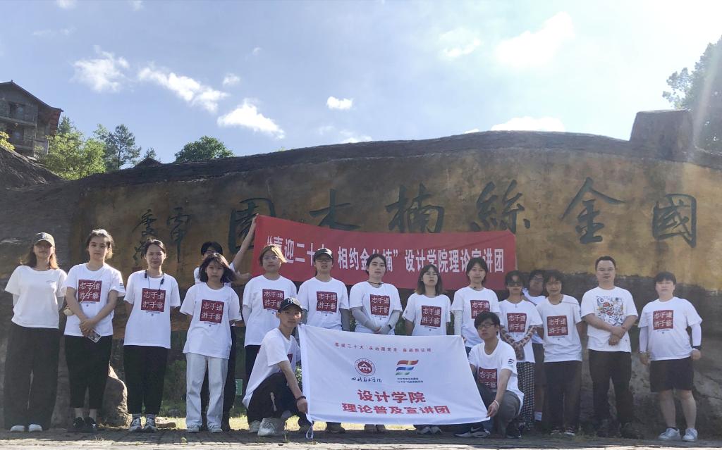 本次实践团由学院辅导员唐剑和李柯柳带队,从设计学、视觉传达、数字媒体艺术、工艺美术、服装设计五个专业中选拔了15名品学兼优学生参与其中。7月9日,团队赶赴重庆市酉阳县两罾乡内口村,设计学院大学生暑假“喜迎二十大 相约金丝楠”理论普及宣讲活动自此正式拉开序幕。