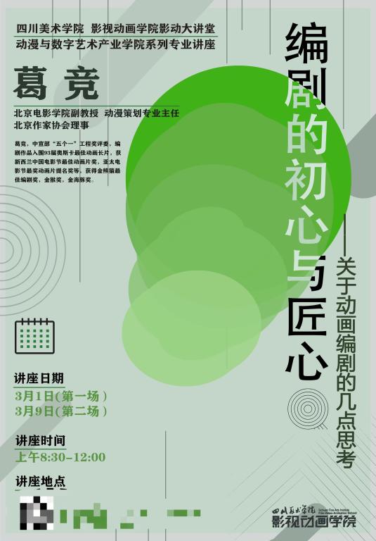 本期讲座主讲人葛竞,系北京电影学院副教授、动漫策划专业主任、北京作家协会理事、中宣部“五个一”工程奖评委,编剧作品入围93届奥斯卡最佳动画长片,获新西兰中国电影节最佳动画片奖,亚太电影节最奖动画片提名奖等,获得金熊猫最佳编剧奖、金猴奖、金海豚奖等。