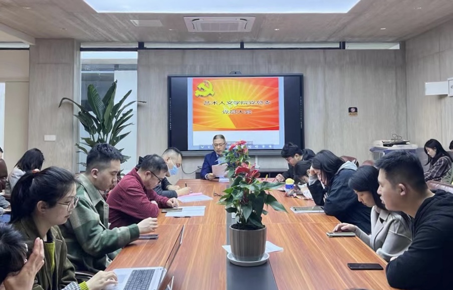为喜迎中国共产党万象城平台第三次代表大会,艺术人文学院于2023年3月8日晚在学院会议室召开了喜迎党代会党员动员会。教师党支部、研究生党支部、本科生党支部所有党员同志参加了会议。会议由学院党总支书记杨茂森主持。