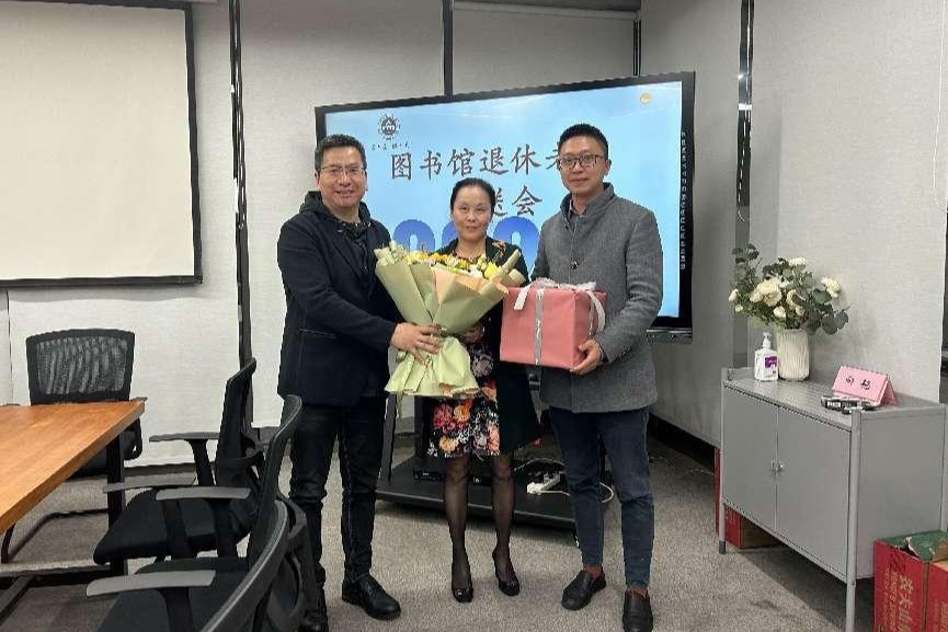 最后,图书馆为退休馆员黄英老师志举办了荣休仪式。图书馆领导班子赞扬了黄英老师在工作岗位上的兢兢业业、认真负责,对其为图书馆建设和发展做出的贡献表示感激。在温馨愉快的氛围中,馆领导为荣休老师敬献鲜花并合影留念。