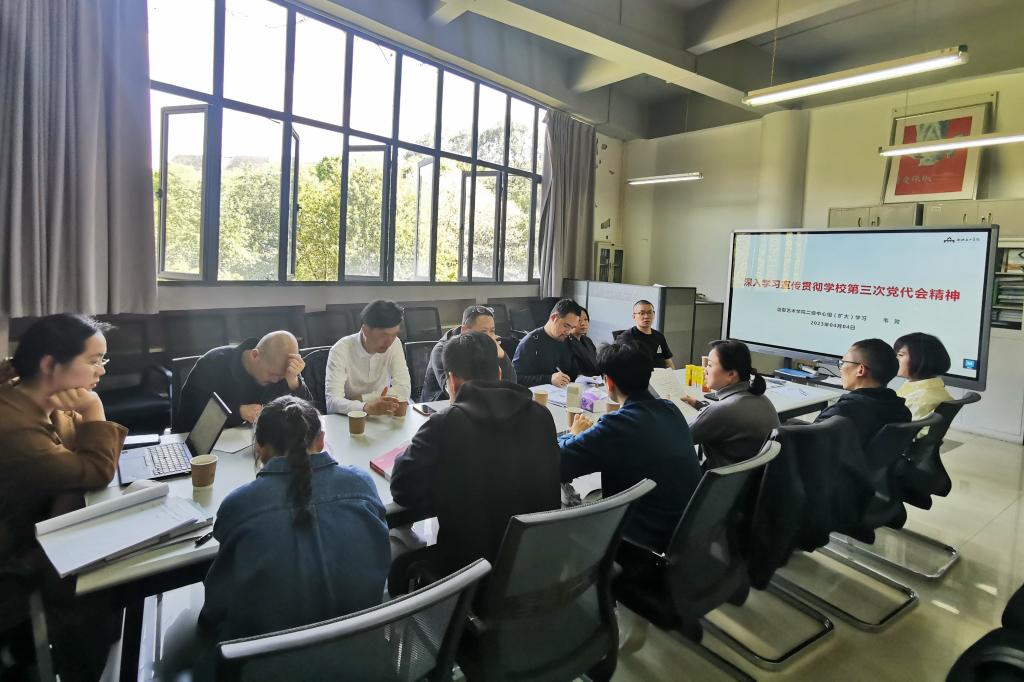 4月4日下午,造型艺术学院党总支召开二级中心组(扩大)学习会,专题学习贯彻学校第三次党代会精神。造型艺术学院党政班子成员、各党支部书记、各系主任、副系主任参加学习,会议由造型艺术学院党总支书记韦芳主持。