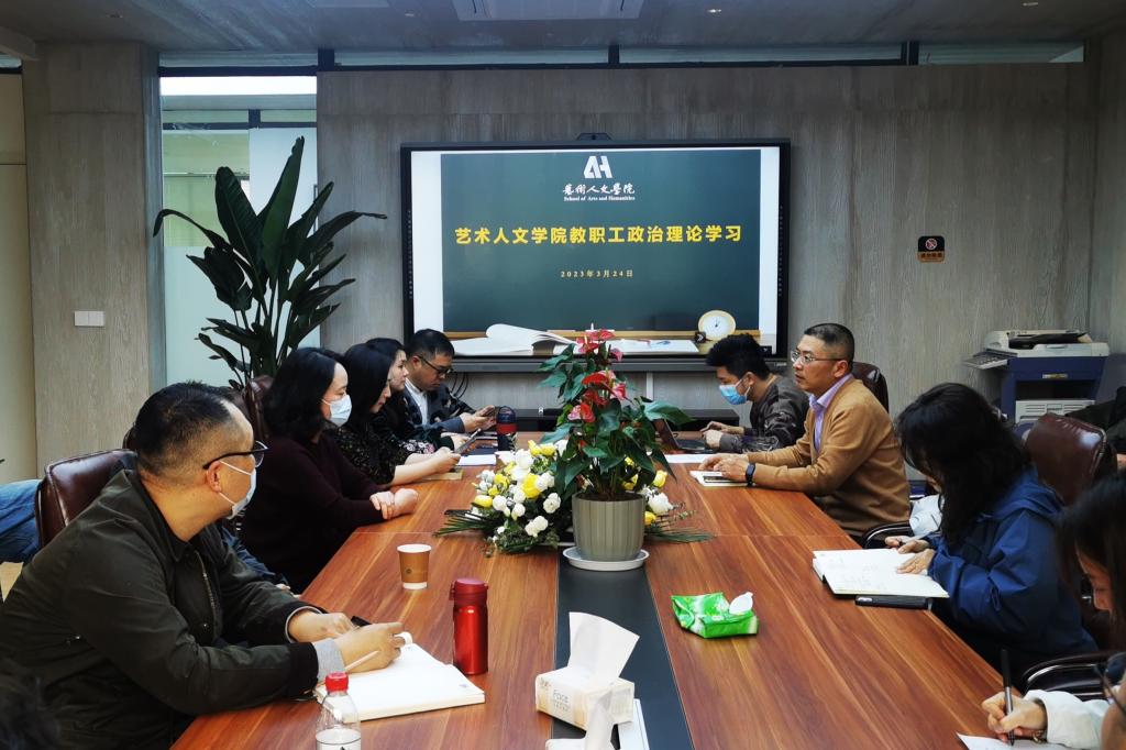 3月24日下午,艺术人文学院在会议室组织全体教职工政治理论学习,将学校第三次党代会精神及时、准确、全面地传达给每一位教职工,为谱写高质量发展新篇章凝心聚力。会议由学院党总支书记杨茂森主持,艺术人文学院全体教职工参加了会议。