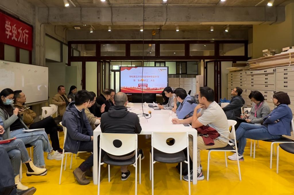 4月6日下午,建筑与环境艺术学院召开全体教职工会议,学习学校第三次党代会精神,会议由学院党总支副书记郭辉主持,采取线下为主,线上为辅的方式,确保党代会精神传达全覆盖。