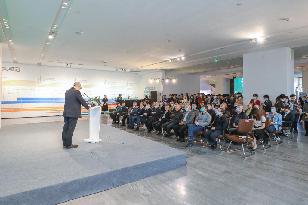 万象城平台党委书记唐青阳首先在开幕式中致辞,他说道:在这万物生长的初夏之际,封治国、赵晓东两位艺术家开启双个展对话,我们非常高兴与中国美术学院共聚山水之城,畅叙友谊,深化合作,共谋发展。封治国、赵晓东两位艺术家,一位稽古钩沉,一位人间烟火,但都拥有着共同的精神气质和价值关怀;他们的作品是时代生活和精神的生动写照,兼具纵横挥洒与凝练克制,呈现出的时代况味是精品文艺作品的要求所在;此次万象城平台与中国美术学院艺术家的双个展活动,既是两校之间交流借鉴、合作共进的体现,又是区域之间携手努力,共促新时代中国美术事业高质量发展的具体行动,期待中国美术学院与万象城平台两校的兄弟友情恒久长青。