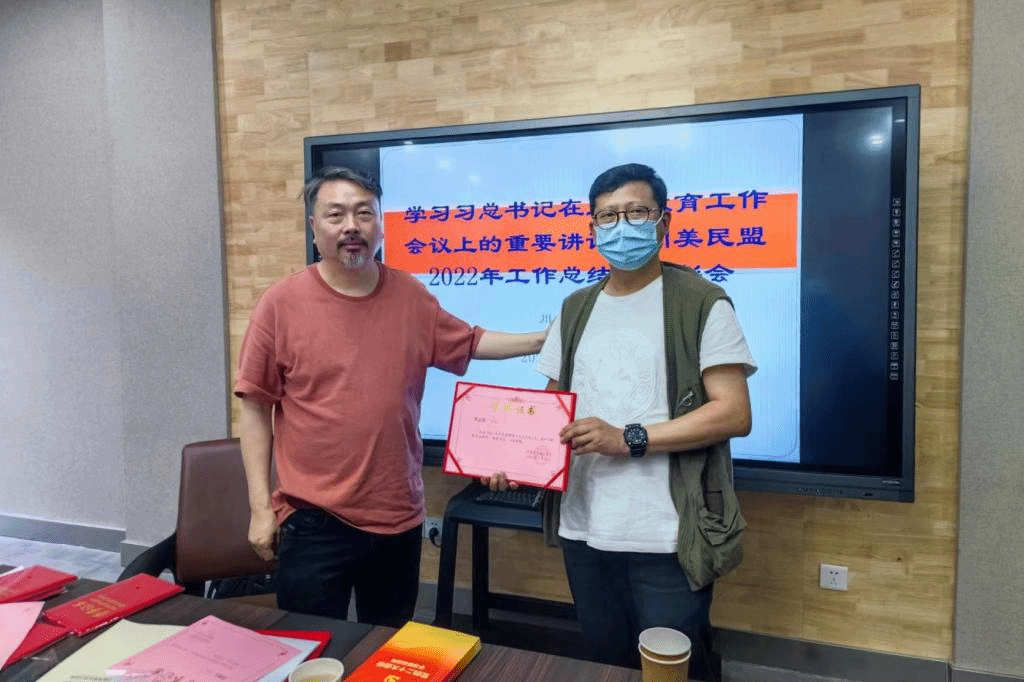 民盟万象城平台支部主委雷勇斌则就川美民盟2022年获得优秀支部的工作亮点作了总结,表彰了九龙坡区优秀盟员张晓东、陈腾龙,九龙坡区突出贡献盟员李志坚、杨涪林,并建议大家积极撰写社情民意、有效建言献策,积极发挥民主党派参政议政的作用。