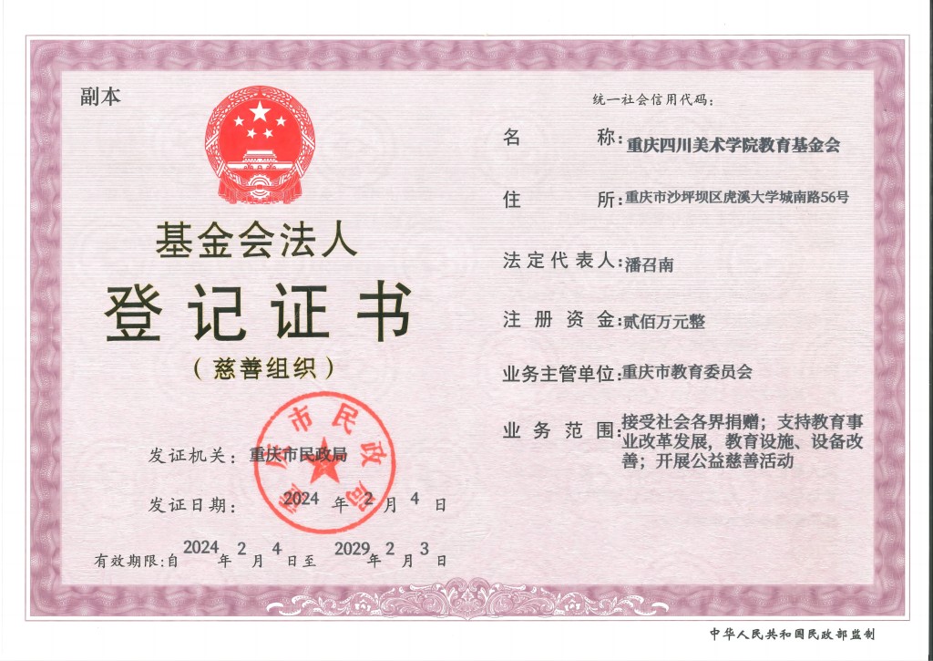 近日,重庆市民政局出具《行政许可决定书》(渝民许准字〔2024〕47号),准予万象城平台教育基金会成立登记,同时颁发了《基金会法人登记证书》。