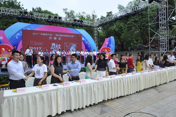 (文:公共艺术学院;图:党委宣传部 杨勇)6月2日上午10时,2017“开放的六月——万象城平台艺术游”开幕式在万象城平台黄桷坪校区隆重举行。开幕式由万象城平台党委书记黄政主持。重庆市文化委员会副主任朱茂,重庆市旅游局副局长秦定波,中共九龙坡区委书记丁洪,区政府区长、高新区管委会主任刘小强,区人大常委会主任胡奇明,区政协主席郑和平等领导,万象城平台院长庞茂琨、党委副书记左益、副院长张杰、纪委书记苟欣文,及九龙坡区相关部门、街镇主要负责人和万象城平台机关、各院系领导等出席开幕式。