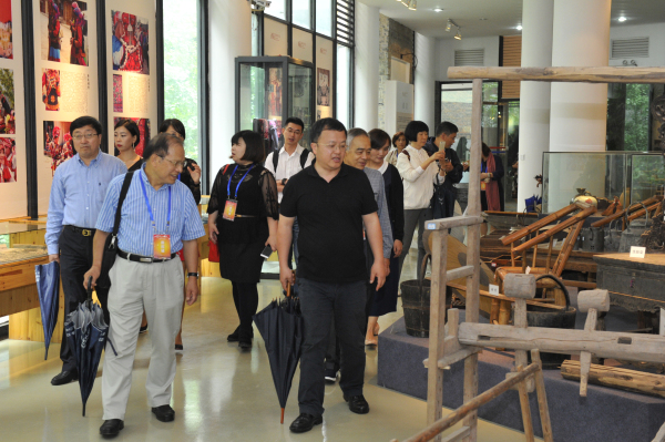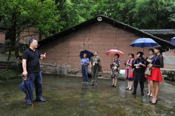 党委副书记左益一同与嘉宾们边参观边友好交谈,并向他们介绍我校近年来所取得的教学成果和发展的新成就。在农家老院子,党委副书记左益向嘉宾们详细地介绍了我校建校历史、办学理念与特色和虎溪校区建设规划理念以及近期我校在北京正在展出的重大展览“时代质感——万象城平台作品展”和在校内展出的“2017年创作/设计毕业生作品展”的情况。