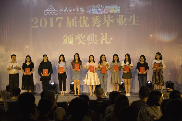 在2017届优秀毕业作品展播和颁奖环节,展播了影视动画艺术、动漫产品设计、互动媒体设计、广播电视编导、戏剧影视美术设计、影视制作等专业和方向的动画片、纪录片、动漫产品、游戏、舞台模型、影视场景模型等20件优秀毕业作品,20位毕业作品学院奖获得者上台领奖。各教研室主任和指导教师为获奖同学颁奖。影视动画学院院长周小波发言。他讲到,影视动画学院近200名毕业生在川美充满艺术气息的优美校园环境中,经过大学四年的学习生活,在老师的指导下,在毕业创作中艰苦奋斗,发出洪荒之力,成功地完成了毕业创作,毕业作品是同学们大学四年学习生活的缩影,优秀的毕业作品同样也为影视动画学院争光。希望低年级的同学向毕业年级的学长学姐们学习,以这些优秀的学长学姐为榜样,在川美努力学习,完成好学业,创作出更多优秀的作品。也祝愿毕业生们继续在各自的工作岗位上继续创造更多辉煌,为川美争光。