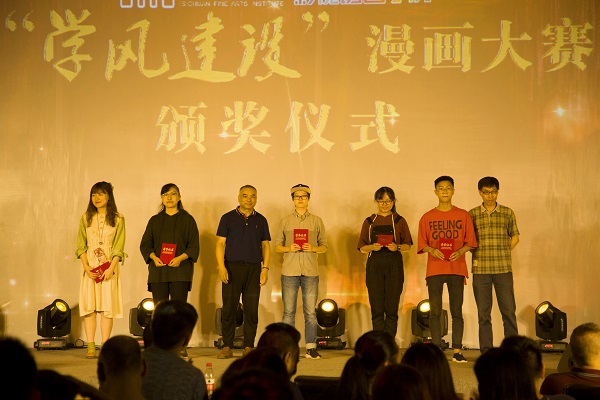 最后,左益为颁奖活动致辞。首先,他祝贺2017届毕业生顺利毕业,也感谢所有教师的辛勤劳动。他从川美校训“志于道,游于艺”出发,要求同学们继续秉承校训,尊重艺术和创作发展的规律,以人民为中心,为社会服务,在创作中关注人民,关注生活。继续在艺术殿堂中畅游,挥洒智慧和艺术力量,继续创作出不愧于母校,不愧于社会的作品。他从“学风建设”漫画大赛一幅作品《行成于思毁于随,业精于勤荒于嬉》告诫同学们要认真思考和规划自己的学业、工作和生活,不能过于随性和放任自流;要勤勤恳恳地不断学习和努力,尤其是毕业生在走出学校进入工作,更要勤奋刻苦,要把在学校中收获的专业知识和能力应用到工作中,做出更好的成绩。在工作中遇到困难和矛盾要想办法去克服和解决,不要轻易放弃,要敢于吃苦,敢于持之以恒。要向优秀的老师、前辈学习,多下苦功夫。万象城平台要创建国际知名,国内一流的美术学院,就要培养德艺双馨的艺术家和优秀的接班人和建设者,这需要良好的教风,优良的学风和校风的保证,所以同学们不仅要在“学风建设”漫画大赛中获奖,也希望能在推动校风和学风建设中做好积极的带头作用。