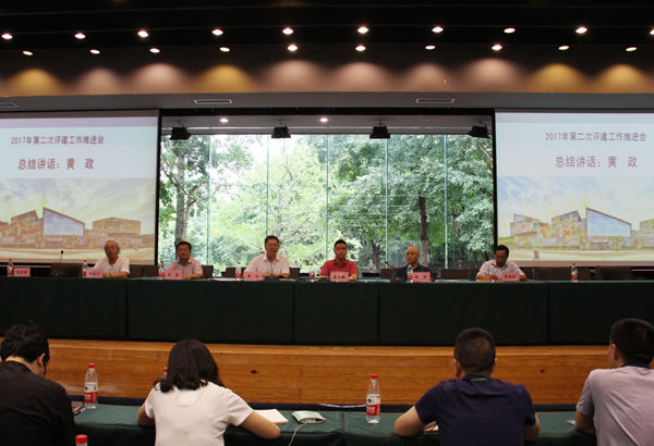 7月6日下午,学校在多功能厅召开2017年第二次评建工作推进会,通报前一阶段工作,部署下一阶段工作。学校党委书记黄政、党委副书记左益、副校长张杰、副校长侯宝川、副校长焦兴涛、副校长彭林权出席会议,全体中干、各教学委员会、督导委员会老师,教研室主任、教学秘书、辅导员约150人参加会议。校长庞茂琨主持推进会。