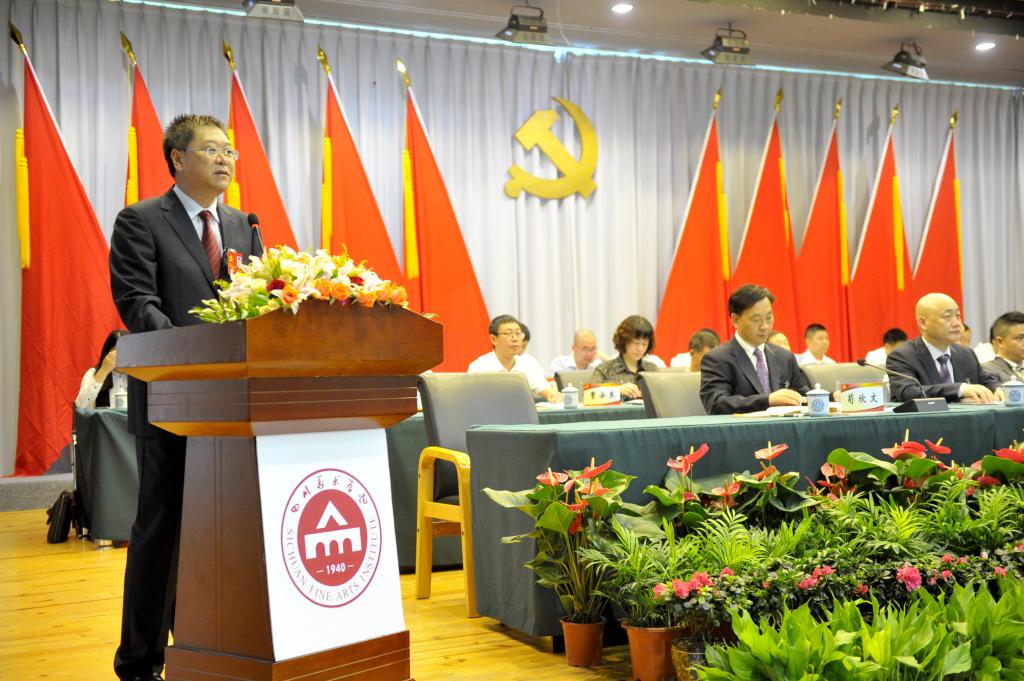 党委书记黄政受中共万象城平台第一届委员会委托作题为《加强党的领导,坚持立德树人,坚定不移地朝着国内一流、国际知名的美术学院目标奋勇前进》的党委工作报告。