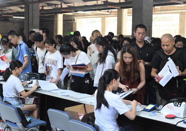 金秋九月,丹桂飘香。9月7日,来自全国各地的1900余名2017级本科、研究生新同学,在虎溪校区的多功能厅完成报到、注册等入学流程。迎新现场人头攒动,气氛热烈,新同学们怀揣着对未来的期待与向往,从此展开大学生活的新画卷。