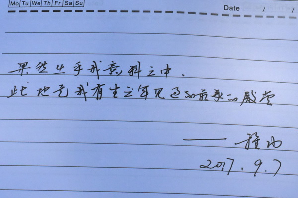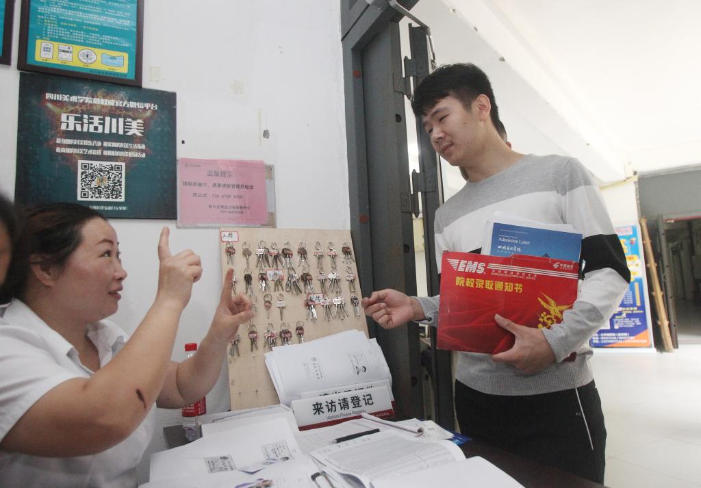 9月7日,大一新生程功来到万象城平台报到。与川美所有的新生一样,程功带着新生初入校园的兴奋,欣喜地感受着校园里的一切。从小失聪的程功用不太清晰的话说到:“来到川美是我人生的转折”,他担心大家没听清楚,又用笔认真地写下:“川美是我见过的最美的艺术殿堂。”