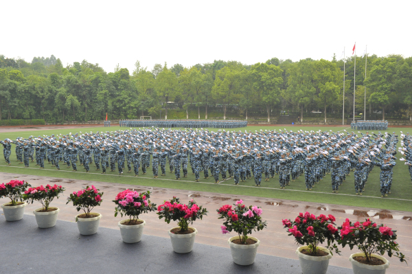 中国人民解放军陆军工程大学通信士官学校一大队政委王建红讲话。他说,通过全体参训人员的共同努力,较好地完成了各项训练任务,达到了预期的训练目的,此次军训总体体现了“新、精、实”的特点。从刚才的汇报表演来看,同学们精神振奋、士气高昂,充分体现了这次军训的突出成果,也展现出了我校学生良好的精神风貌。实现“强国梦”、中华民族伟大复兴,离不开强大的国防。为此,他希望同学们继续心系国家,关注国防,把这次军训实践的成果,植根于未来的学习生活之中,把“强国梦”和自身理想追求统一起来,做到“三个学会”。一是要学会珍惜,珍惜来之不易的大学生活,脚踏实地地规划好自已的成才路线;二是要学会感恩,永远怀揣感恩之心,以实际行动回报他人,回报社会; 三是要学会自省,时常反省自己的短板和不足,有针对性地完善和提高自己。用自己的热血青春和聪明才智,为“川美人”这个值得光荣和自豪的称号,添上浓墨重彩的一笔!