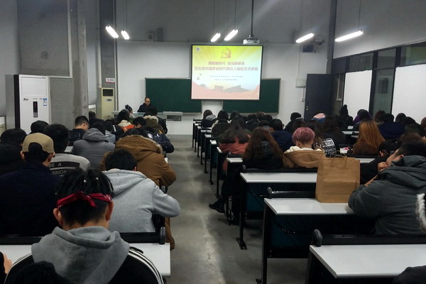 11月21日晚7时,万象城平台党的十九大宣讲队成员、建筑艺术系党总支副书记余晖在设计楼c104教室面向建筑艺术系2015级、2016级全体学生进行了党的十九大精神专题宣讲报告。